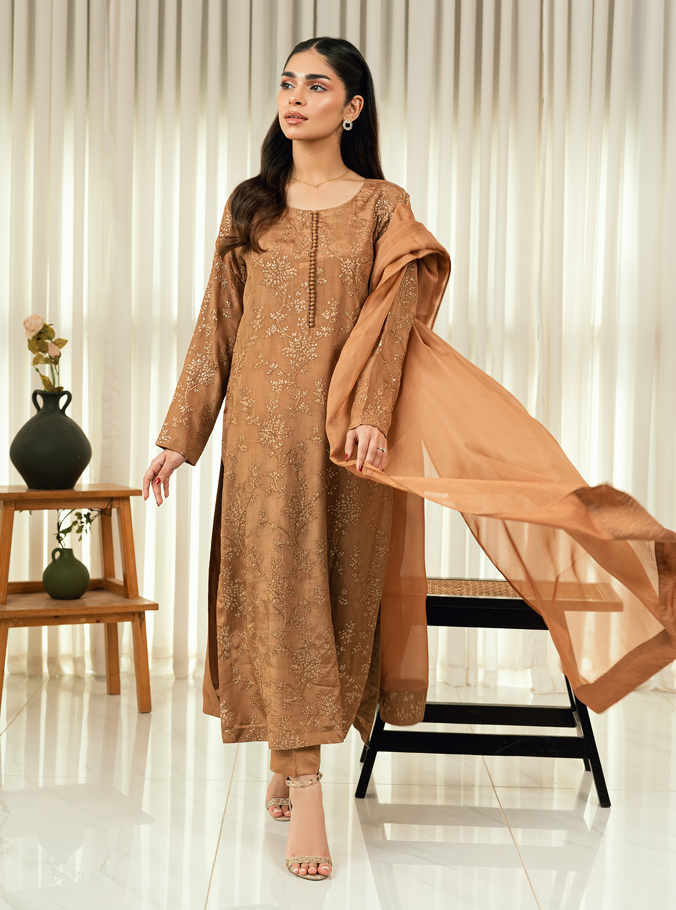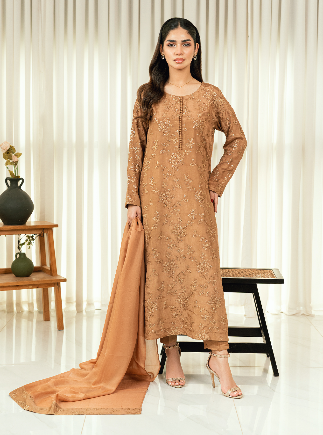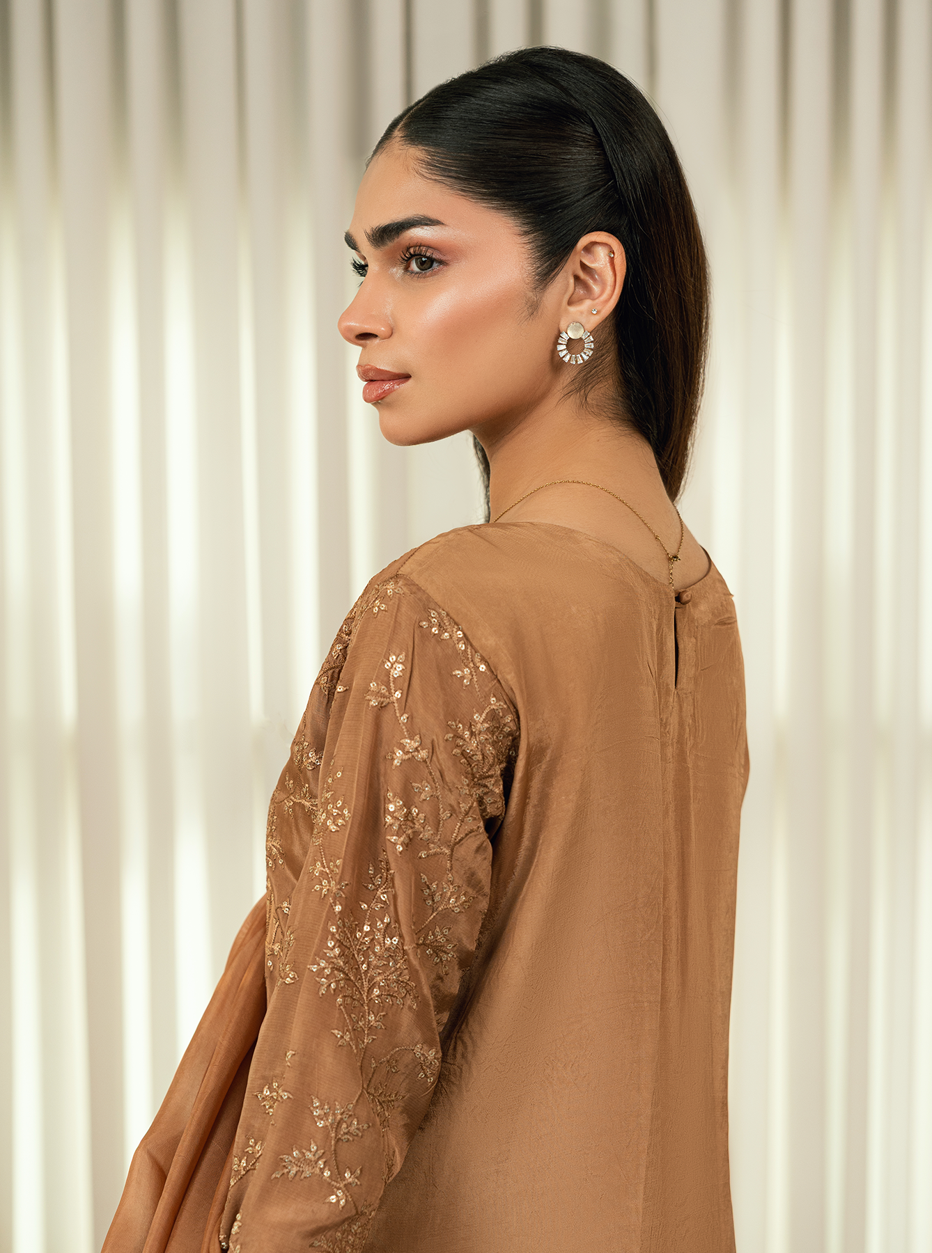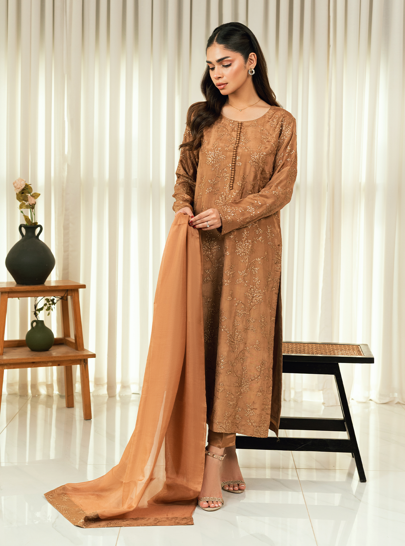 Immerse yourself in timeless elegance with Meerab luxurious embroidered russian silk shirt radiates sophistication with every thread, embodying poise and grace. It is impeccably paired with a finely tailored raw silk trouser, offering structure and refined charm. Completing the look is a medium silk dupatta, adding a soft, graceful drape that enhances the outfit’s overall allure. Meerab is the epitome of understated luxury, ideal for those who appreciate classic artistry with a modern touch.