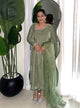 This stunning outfit features a crepe silk shirt and trouser set, adorned with intricate prints that exude sophistication. Paired with a lightweight chiffon dupatta, it offers a complete look that's perfect for any special occasion or festive event.
