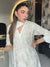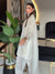 The outfit is paired with a matching white silk shalwar, designed with a loose and comfortable fit that enhances the traditional charm while maintaining a luxurious drape. A coordinating white dupatta completes the ensemble, adding softness and flow to the overall appearance.